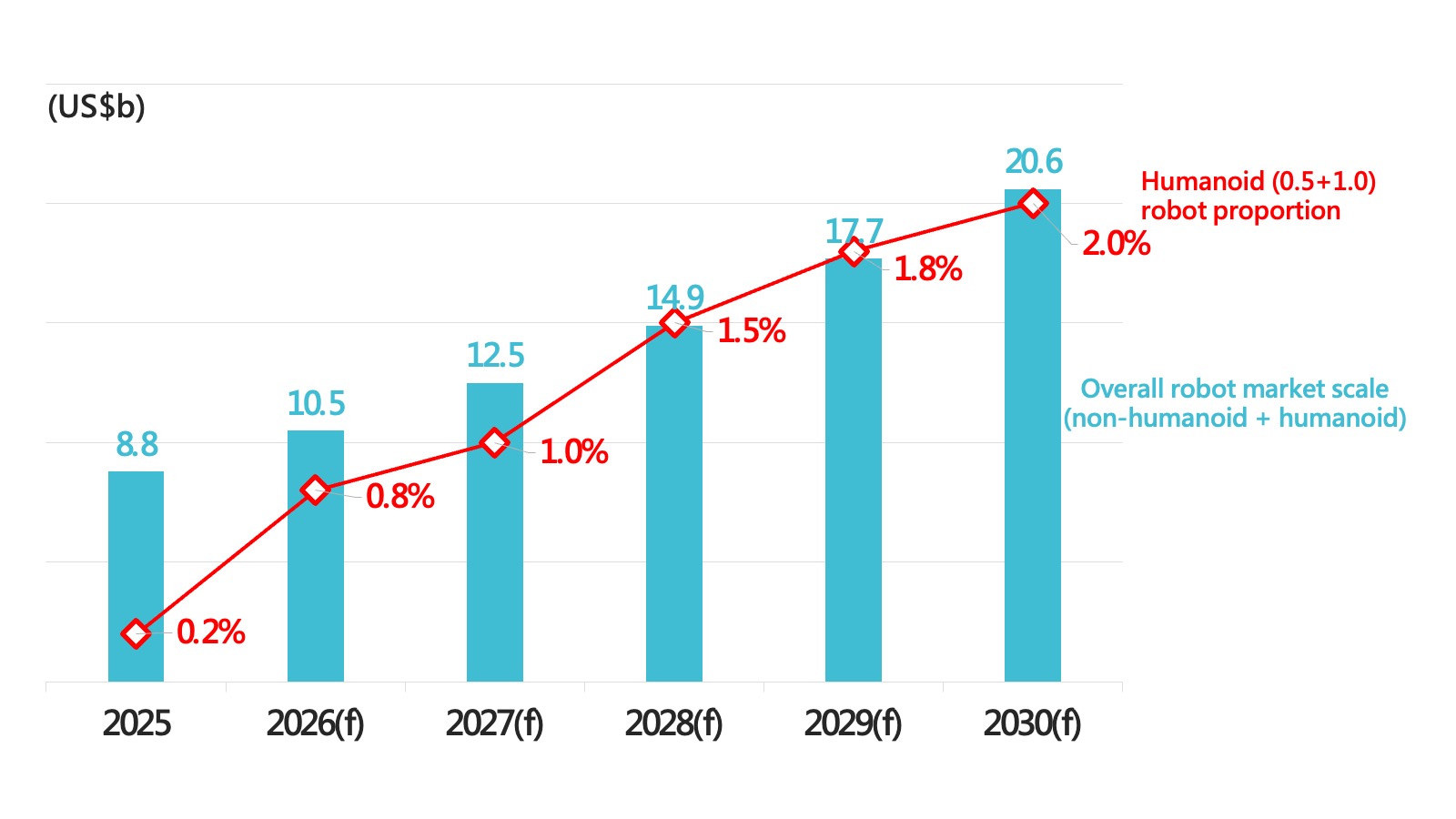 Figure 22025–2030 Global robot and humanoid robot market size forecast